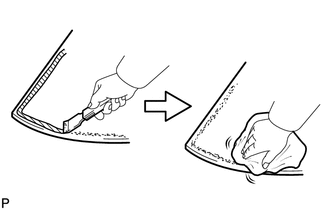 (1) Using a knife, cut away excess adhesive on the contact surface of the vehicle body as shown in the illustration.