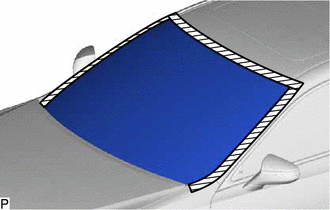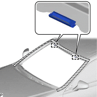 | (c) Place matchmarks on the windshield glass sub-assembly and vehicle body at the locations indicated in the illustration. HINT: Matchmarks are not necessary if the windshield glass is not going to be reused. |