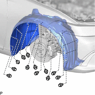 | (c) Remove the 13 clips and rear fender splash shield sub-assembly RH. |