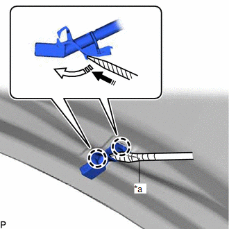 (a) Using a screwdriver with its tip wrapped with protective tape, disengage the 2 claws as shown in the illustration to separate the washer nozzle sub-assembly.