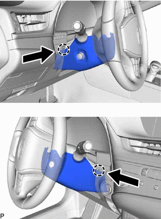 (e) Push the lower steering column cover sub-assembly and disengage the 2 claws as shown in the illustration.