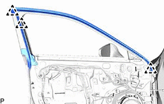 The necessary procedures (adjustment, calibration, initialization, or registration) that must be performed after parts are removed and installed, or replaced during front door window frame moulding removal/installation are shown below.