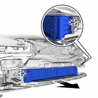 | (a) Disengage the 2 claws to remove the front radiator side air guide plate LH. |