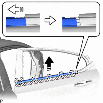 (a) Apply protective tape around the rear door belt moulding sub-assembly as shown in the illustration.
