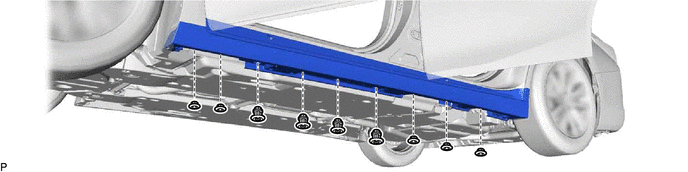 (e) Disengage the 9 clips to remove the body rocker panel moulding assembly as shown in the illustration.