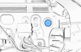 (d) Disengage the clip and 2 claws to remove the outer mirror install hole cover.
