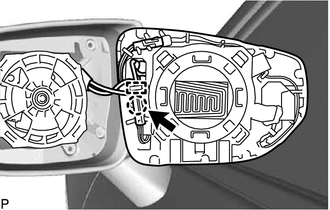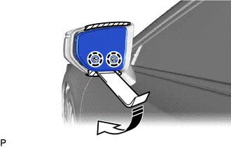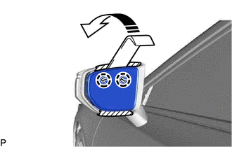 (1) Using a moulding remover, disengage the 2 claws on the upper part of the outer mirror as shown in the illustration.
