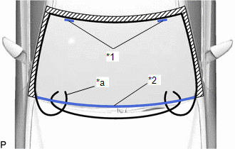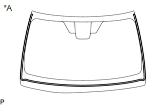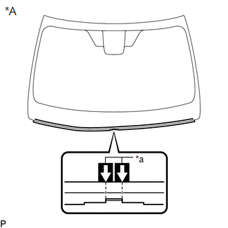 | (c) Place matchmarks on the windshield glass sub-assembly and vehicle body at the locations indicated in the illustration. HINT: Matchmarks are not necessary if the windshield glass is not going to be reused. |