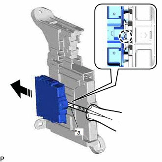 (a) Using a screwdriver with its tip wrapped with protective tape, disengage the claw and remove the clearance warning ECU assembly as shown in the illustration.