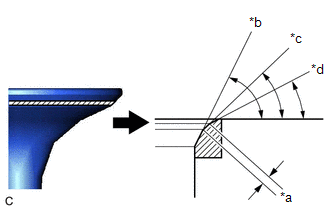 | (a) Using a 45° cutter, resurface the exhaust valve seat so that the exhaust valve seat width is more than the standard. |