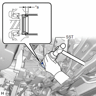 | (b) Using SST and a hammer, install the rear drive shaft oil seal LH to the rear differential carrier sub-assembly. SST: 09223-00010 Standard Depth: 6.7 to 7.7 mm (0.264 to 0.303 in.) NOTICE: