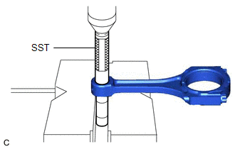 | (c) Using SST and a press, push in the connecting rod small end bush. SST: 09222-30010 |