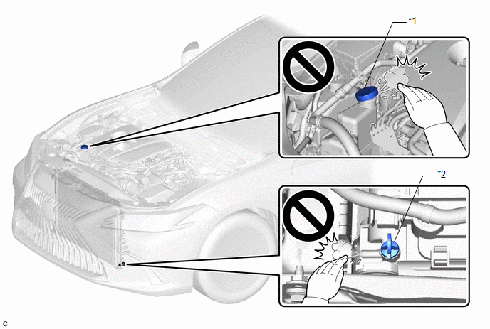 | *1 | Reserve Tank Cap | *2 | Drain Cock Plug |