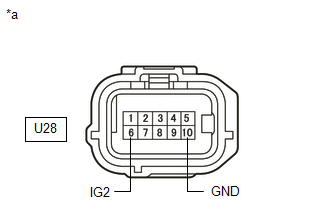 | U28-6 (IG2) - Body ground | Power switch on (IG) | 11 to 14 V |