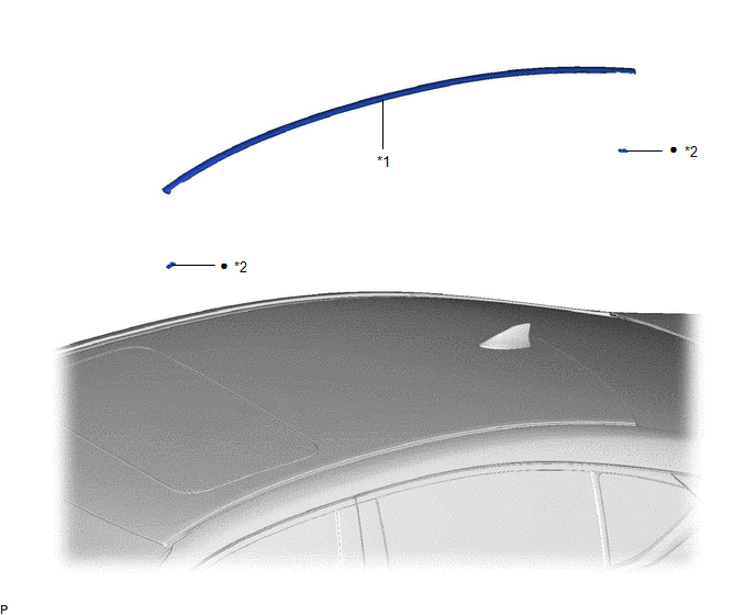 | *1 | CENTER ROOF DRIP SIDE FINISH MOULDING | *2 | NO. 1 ROOF DRIP SIDE FINISH MOULDING CLIP |