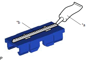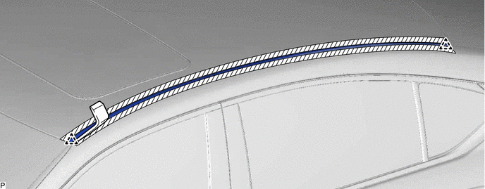 | (a) Apply a 2 to 3 mm (0.0787 to 0.118 in.) bead of adhesive (3M DP-105 or equivalent) to each new No. 1 roof drip side finish moulding clip. HINT: Adhesive strength (tensile strength): 13.7 MPa (140.0 kgf/cm2, 1987 psi) or more (when the temperature is 23°C (73°F).) |
