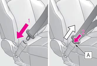 ■Automatic locking retractor (ALR) When a passenger's shoulder belt is completely extended and then retracted even slightly, the belt is locked in that position and cannot be extended. This feature is used to hold a child restraint system (CRS) firmly. To free the belt again, fully retract the belt and then pull the belt out once more.