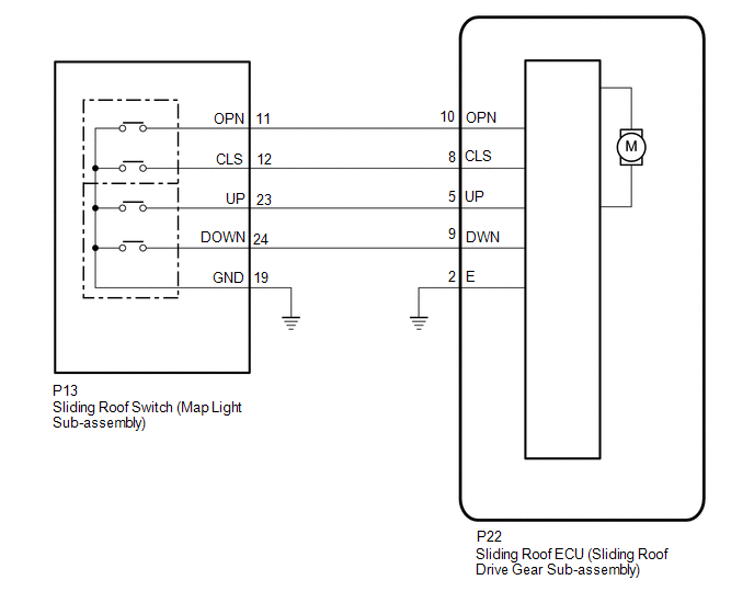 | 5. | CHECK HARNESS AND CONNECTOR (SLIDING ROOF ECU (SLIDING ROOF DRIVE GEAR SUB-ASSEMBLY) - SLIDING ROOF SWITCH (MAP LIGHT SUB-ASSEMBLY) AND BODY GROUND) |