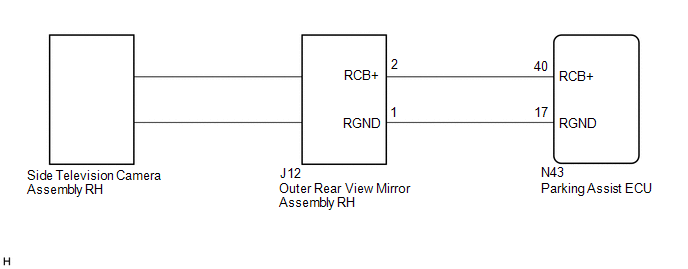 | 2. | CHECK HARNESS AND CONNECTOR (PARKING ASSIST ECU - OUTER REAR VIEW MIRROR ASSEMBLY RH) |