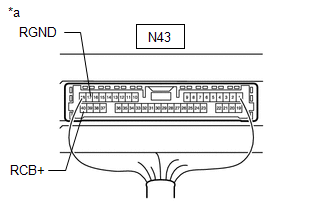 | N43-40 (RCB+) - N43-17 (RGND) | Engine switch on (IG) | 5.5 to 7.05 V |