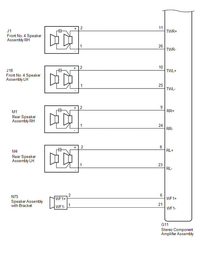 | 20. | CHECK HARNESS AND CONNECTOR (STEREO COMPONENT AMPLIFIER ASSEMBLY - FRONT NO. 2 SPEAKER ASSEMBLY) |