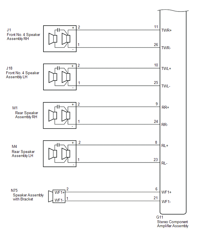 | 22. | CHECK HARNESS AND CONNECTOR (STEREO COMPONENT AMPLIFIER ASSEMBLY - FRONT NO. 1 SPEAKER ASSEMBLY) |