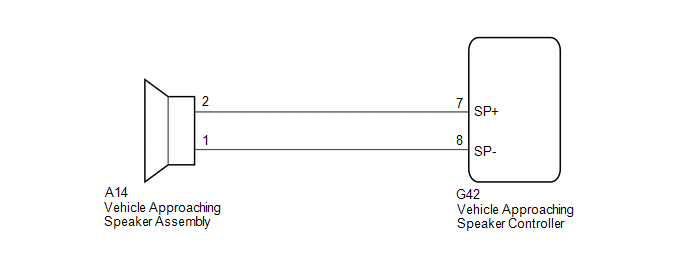 | 2. | CHECK HARNESS AND CONNECTOR (VEHICLE APPROACHING SPEAKER ASSEMBLY - VEHICLE APPROACHING SPEAKER CONTROLLER) |