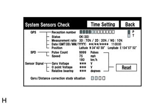 | (a) Enter the "System Sensors Check" screen. Refer to Check GPS & Vehicle Sensors in Operation Check. Click here |