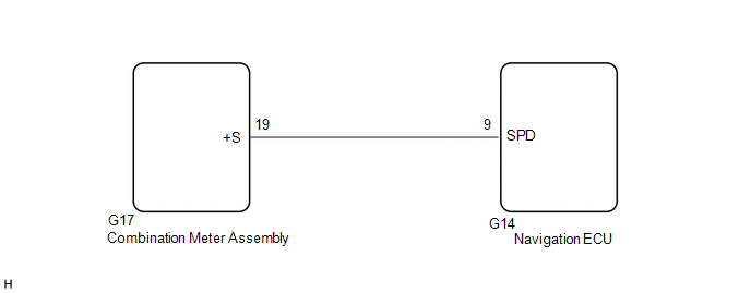 | (a) Check the input waveform. (1) Remove the navigation ECU with the connector(s) still connected. (2) Connect an oscilloscope to terminal G14-9 (SPD) and body ground. (3) Turn the engine switch on (IG). (4) Turn a wheel slowly. (5) Check the signal waveform according to the condition(s) in the table below.