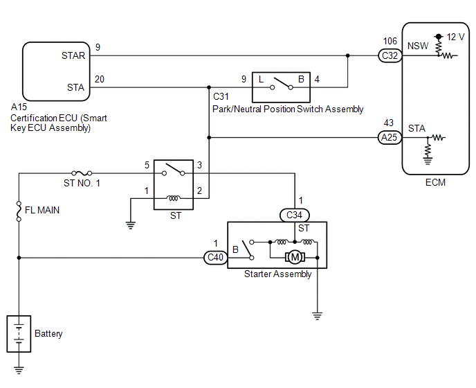 | Required sensors/components (Main) | ST relay, Park/neutral position switch assembly, Certification ECU (Smart Key ECU Assembly) |