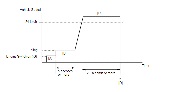 This monitor runs when the vehicle is driven at 20 km/h (12.43 mph) or more for 20 seconds or more.
