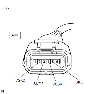 | A44-4 (VCSK) - A44-5 (SKG) | Power switch on (IG) | 4.84 to 5.16 V |