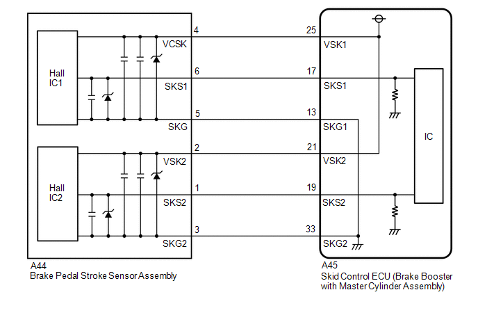 | A45-13 (SKG1) - A44-5 (SKG) | Always | Below 1 Ω |