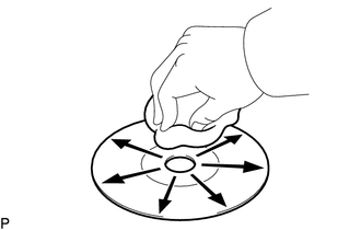 (1) If dirt is on the disc surface, wipe it clean with a soft dry cloth, such as an eyeglass cleaner for plastic lenses, from the inside to the outside in a radial direction.