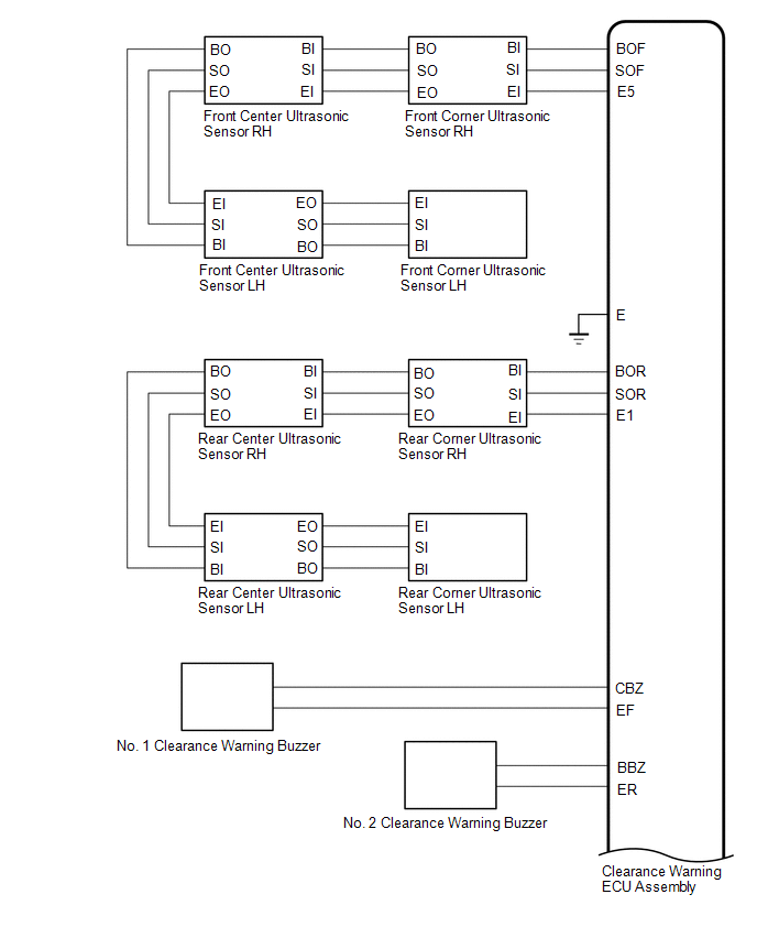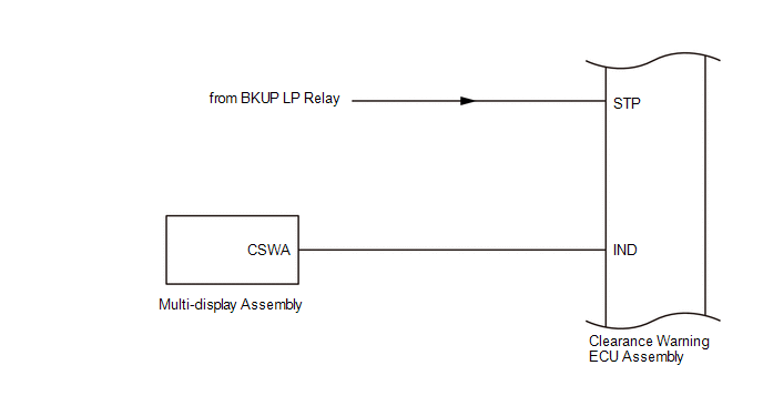DESCRIPTION The multi-display receives a signal from the clearance warning ECU assembly to change the display screen. WIRING DIAGRAM PROCEDURE 1. CHECK HARNESS AND CONNECTOR (CLEARANCE WARNING
