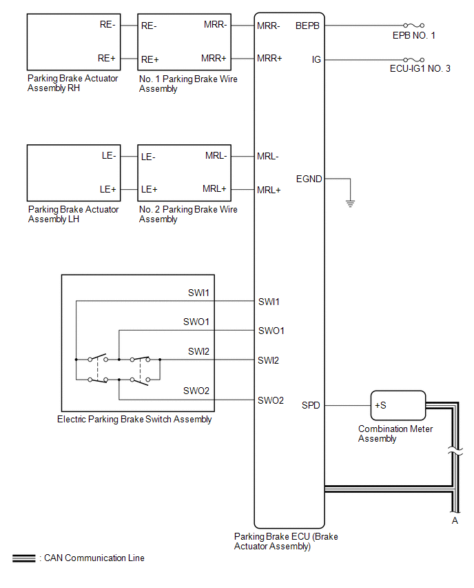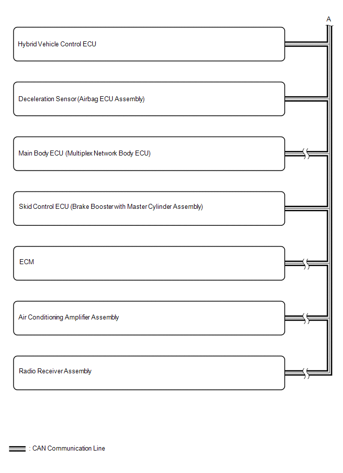 DESCRIPTION The parking brake ECU (brake actuator assembly) communicates with the hybrid vehicle control ECU assembly, skid control ECU (brake booster with master cylinder assembly) and deceleration s