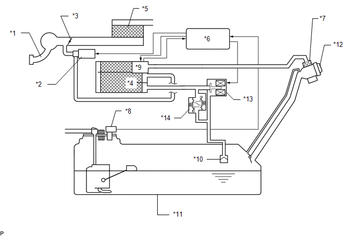 | *9 | Canister Pump Module (Leak Detection Pump Sub-assembly) - Canister Pressure Sensor - Pump Motor - Vent Valve | *10 | Cut-off Valve |