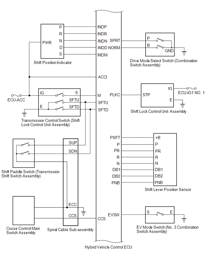 PROBLEM SYMPTOMS TABLE Hybrid Control System Symptom Suspected Area Link Cannot enter EV drive mode CAN communication system Pattern Select Switch EV Mode Circuit EV mod