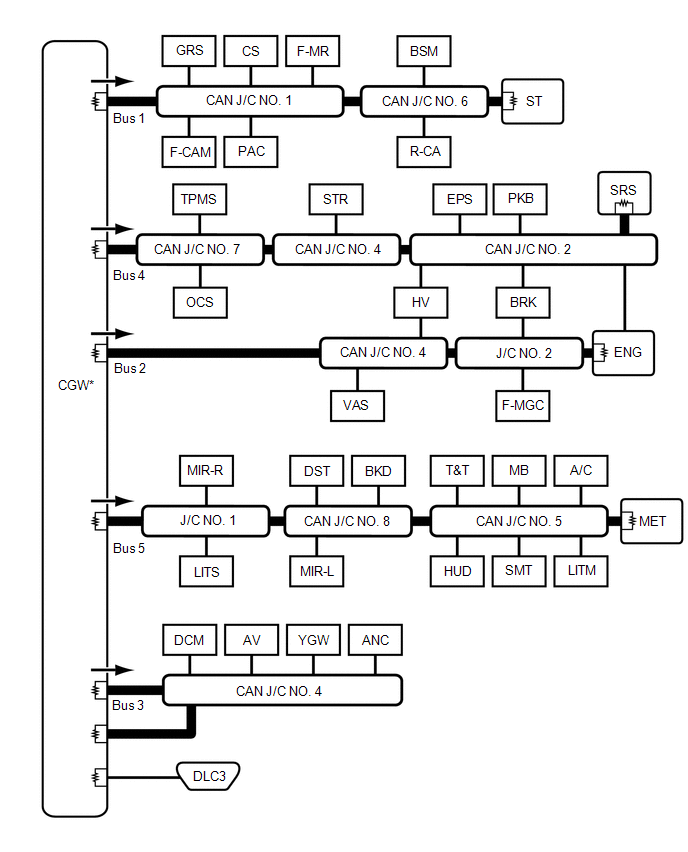 | CAN Branch Line | * | Gateway Function Equipped ECU |
