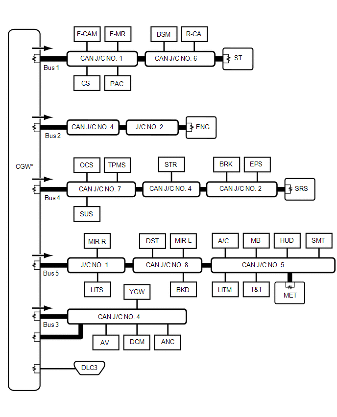 | CAN Branch Line | * | Gateway Function Equipped ECU |
