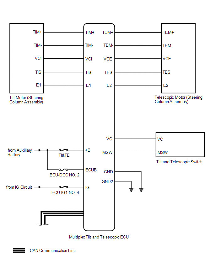 | Tilt and Telescopic Switch | Multiplex Tilt and Telescopic ECU | Tilt and Telescopic Switch signal | Direct line |