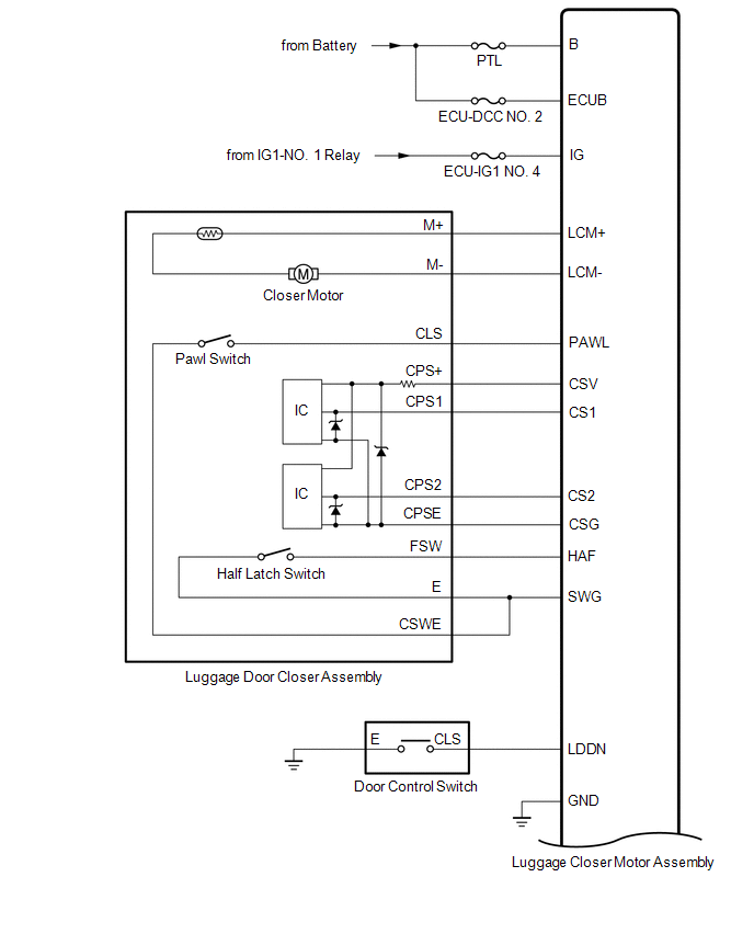 | Main body ECU (multiplex network body ECU) | Luggage closer motor assembly | -