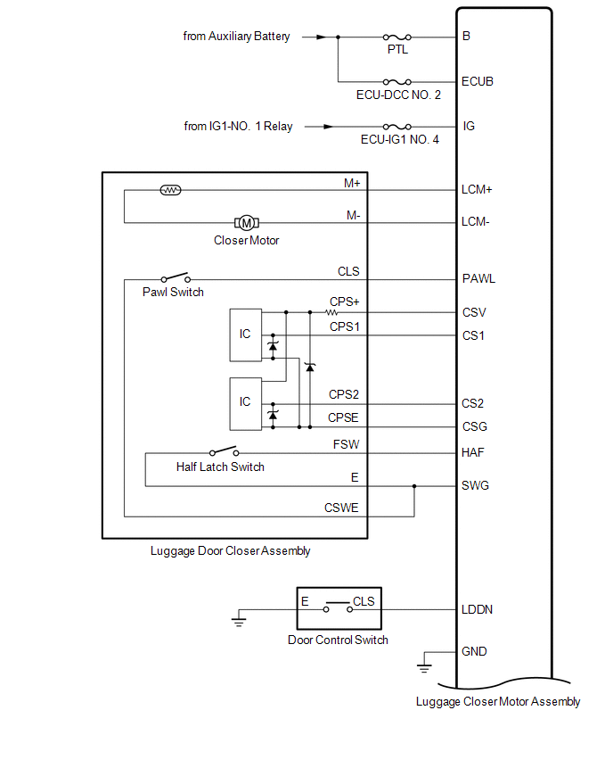 | Main body ECU (multiplex network body ECU) | Luggage closer motor assembly | -
