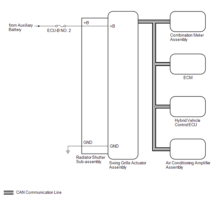 SYSTEM DESCRIPTION GRILLE SHUTTER SYSTEM (a) General description The swing grille actuator assembly receives signals from the ECM, hybrid vehicle control ECU and air conditioning amplifier assembly vi