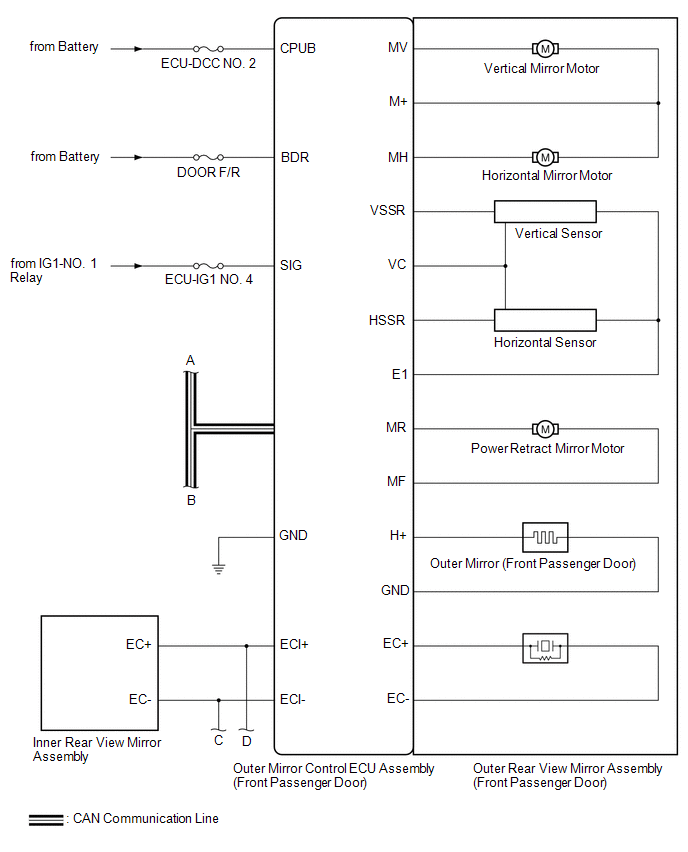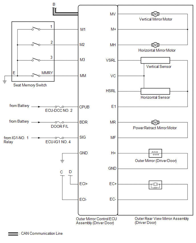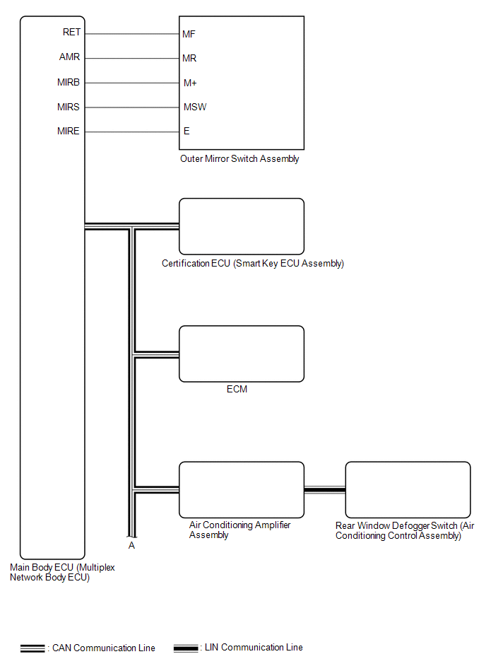 | Main Body ECU (Multiplex Network Body ECU) | Outer Mirror Control ECU Assembly | -
