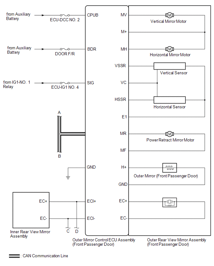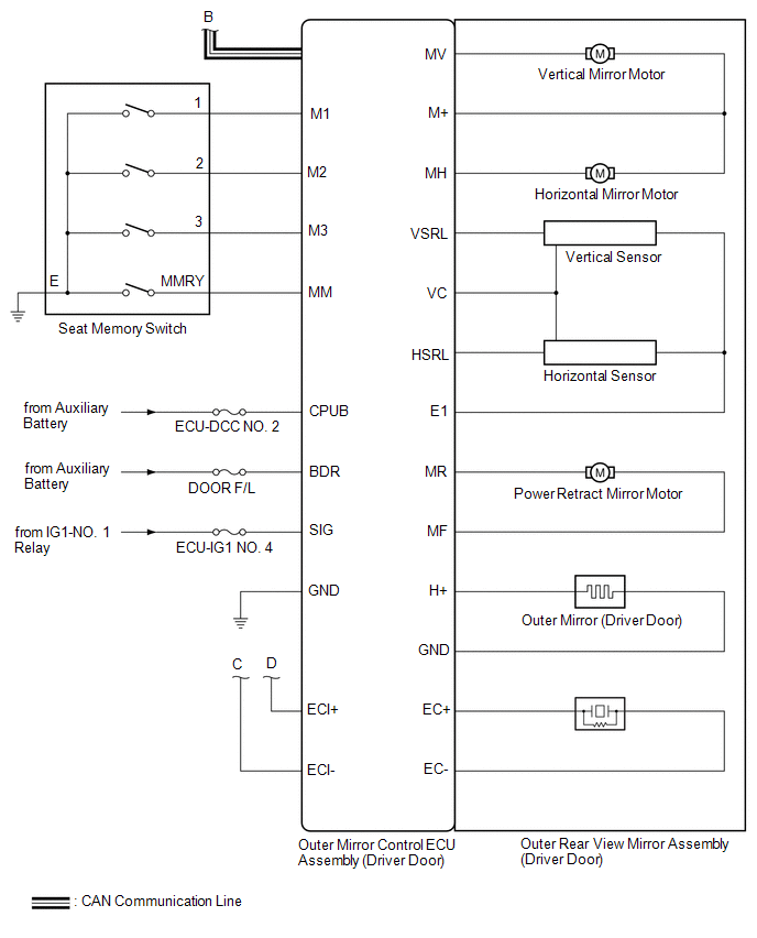 | Main Body ECU (Multiplex Network Body ECU) | Outer Mirror Control ECU Assembly | -