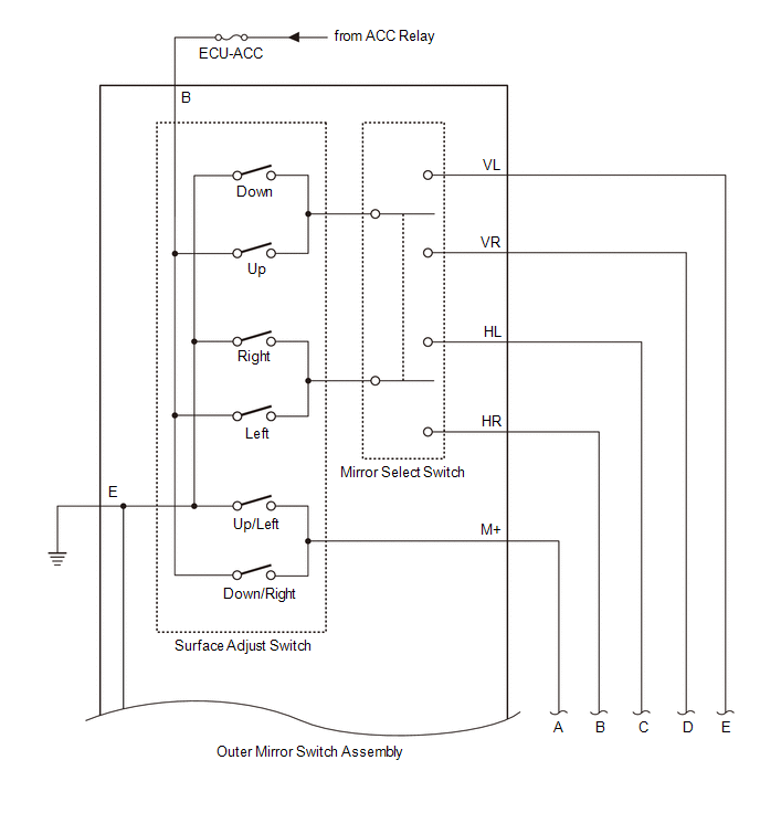 SYSTEM DESCRIPTION POWER MIRROR CONTROL SYSTEM (w/o Memory) DESCRIPTION (a) This system has the following functions: electrical remote control mirror function, power retract mirror function, mirror he