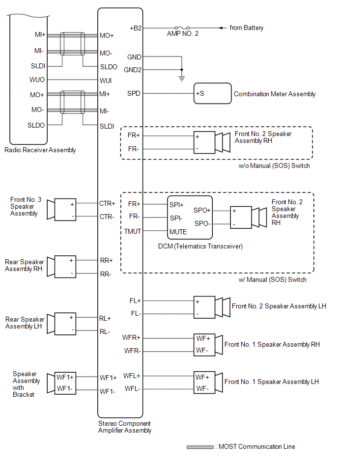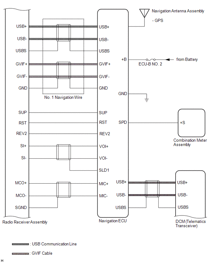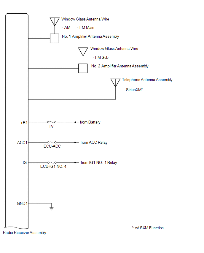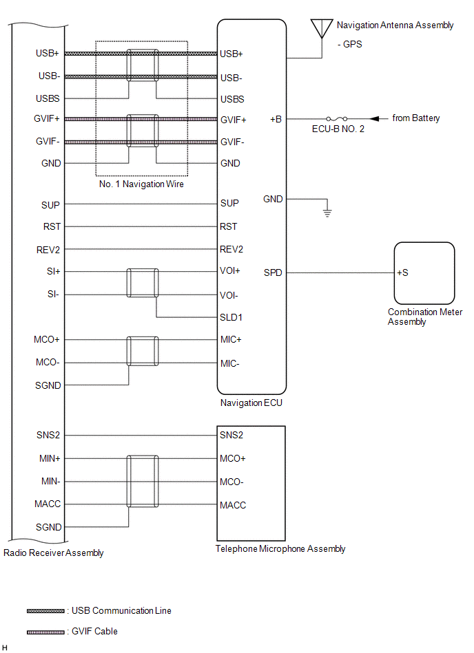 DESCRIPTION This circuit includes the navigation ECU and radio receiver assembly. WIRING DIAGRAM PROCEDURE 1. CHECK HARNESS AND CONNECTOR (RADIO RECEIVER ASSEMBLY - NAVIGATION ECU) (a) Disconnect the G1 radio receiver assembly connector. (b) Disconnect the G14 navigation ECU connector. (c)