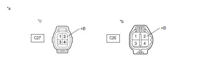 | C27-2 (+B) - Body ground | Engine switch on (IG) | 11 to 14 V |