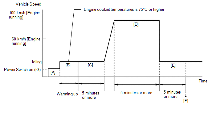 (e) Start the engine and warm it up until the engine coolant temperature is 75°C (167°F) or higher with all the accessories switched off.